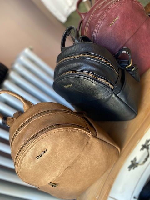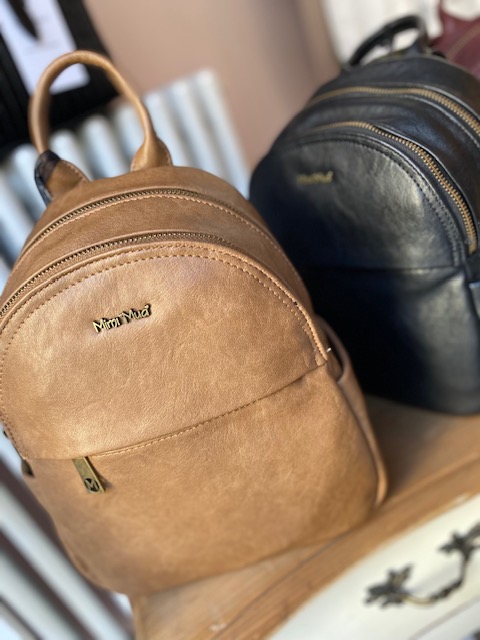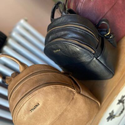 in ecopelle con tantissime tasche, anche una sul retro di sicurezza